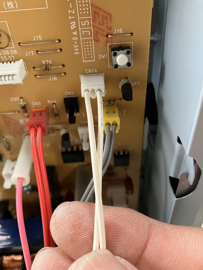 コントロール部を外します。4隅のビスを外し、フラットケーブルを抜きます。切れないように注意が必要。