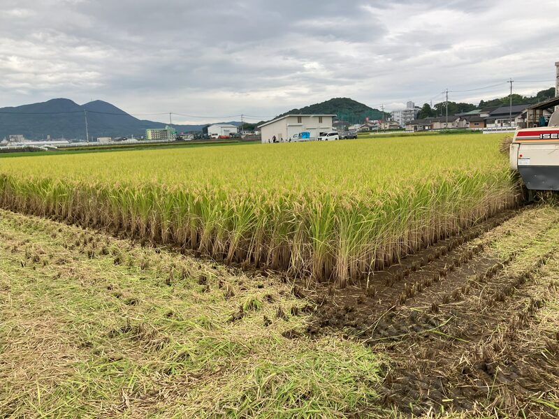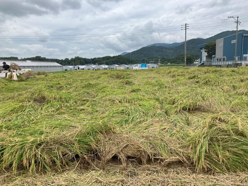 そしてもう一枚の田んぼは、しっかりと立っていて順調に刈り取っていきます。