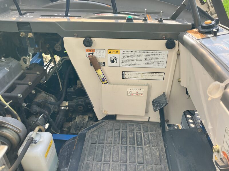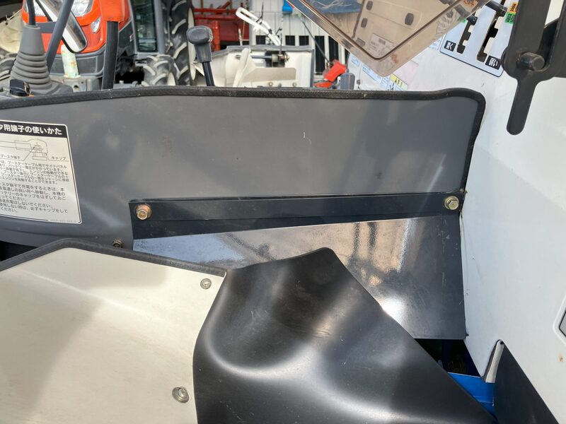 車体左側、刈り取り部を外さなくてもベルト交換はできますが、ボルト2本で固定されているパネルは外します。