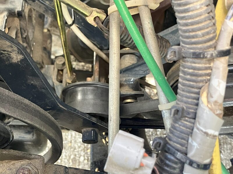 左側にベルトにテンションをかけるプーリーが見えます。これを緩めないとベルトを取付けできません。