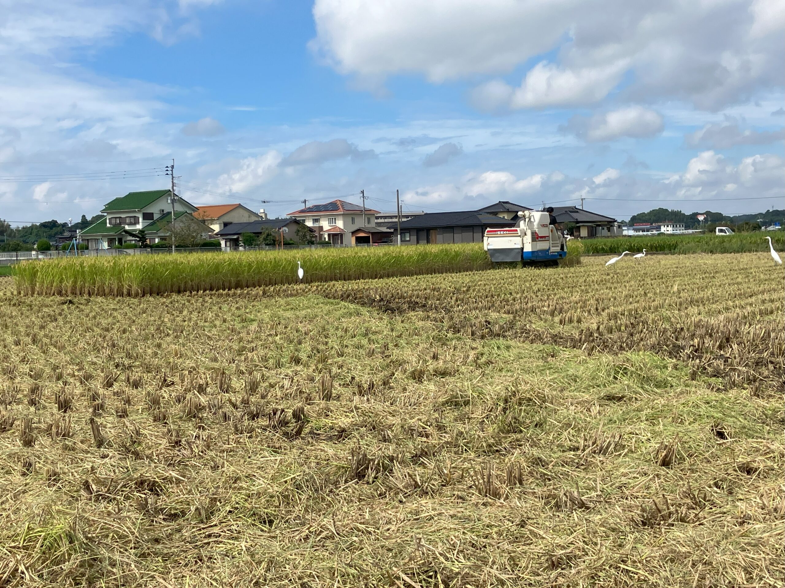 そしてもう一枚の田んぼは、しっかりと立っていて順調に刈り取っていきます。